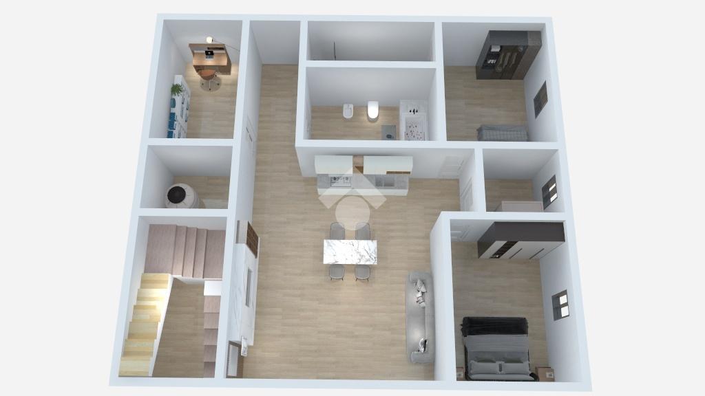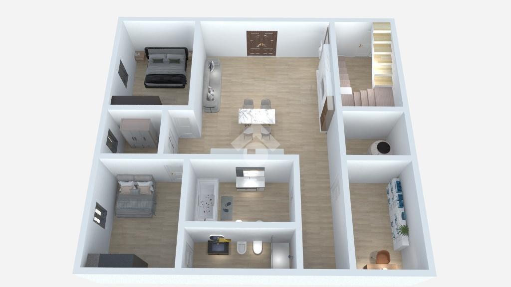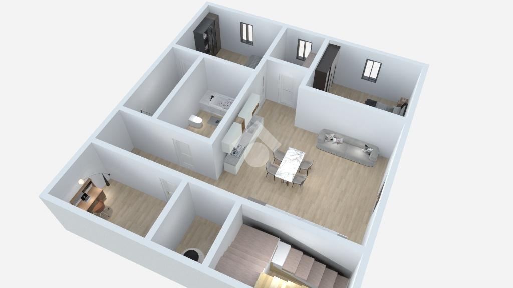Si accede direttamente sulla cucina soggiorno, sulla destra, si trovano tre camere da letto, tutte dotate di finestra sul prospetto principale. La terza camera è provvista di un bagno interno.