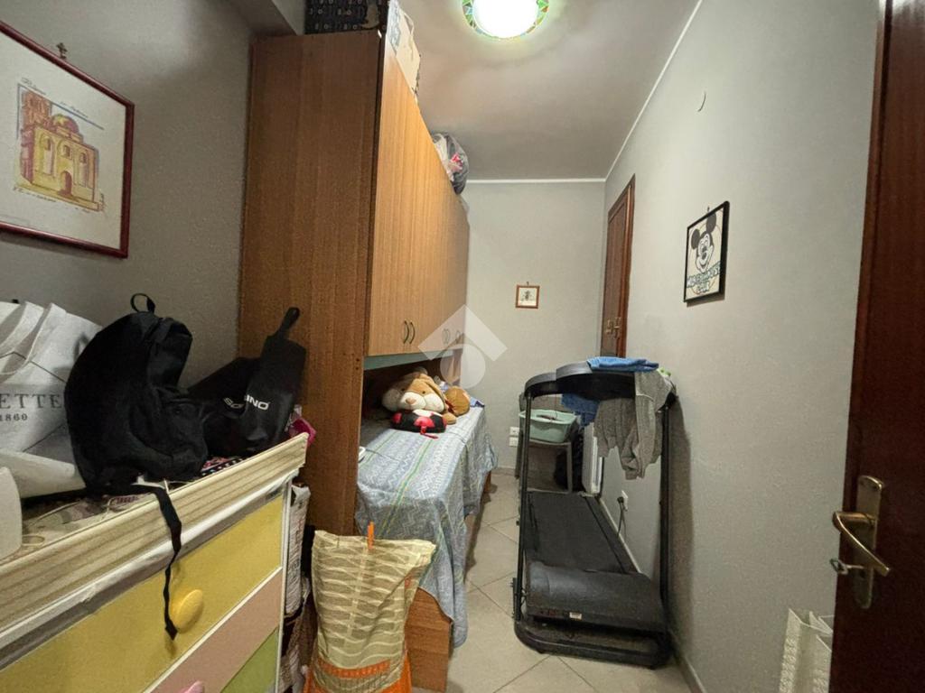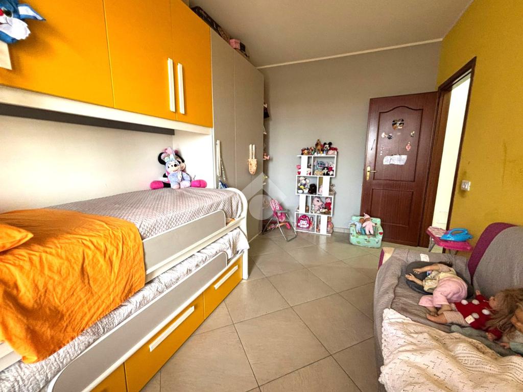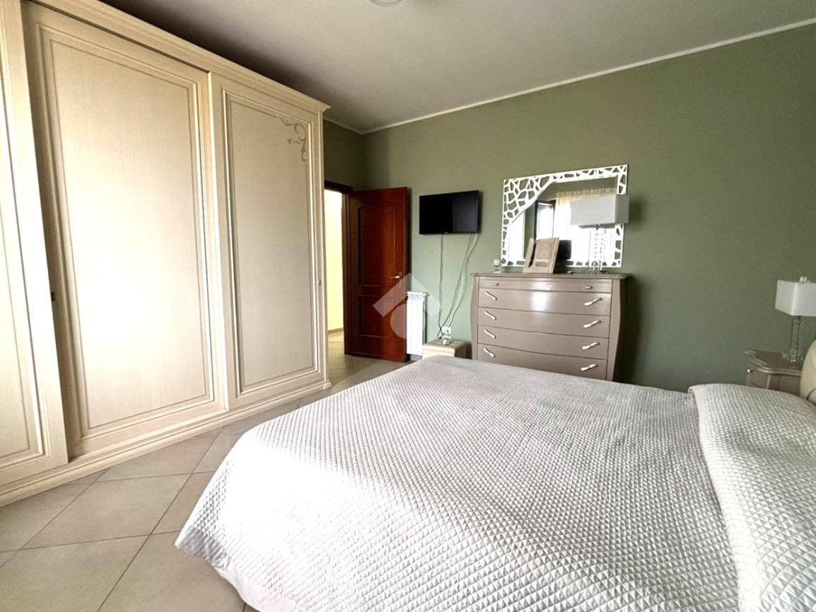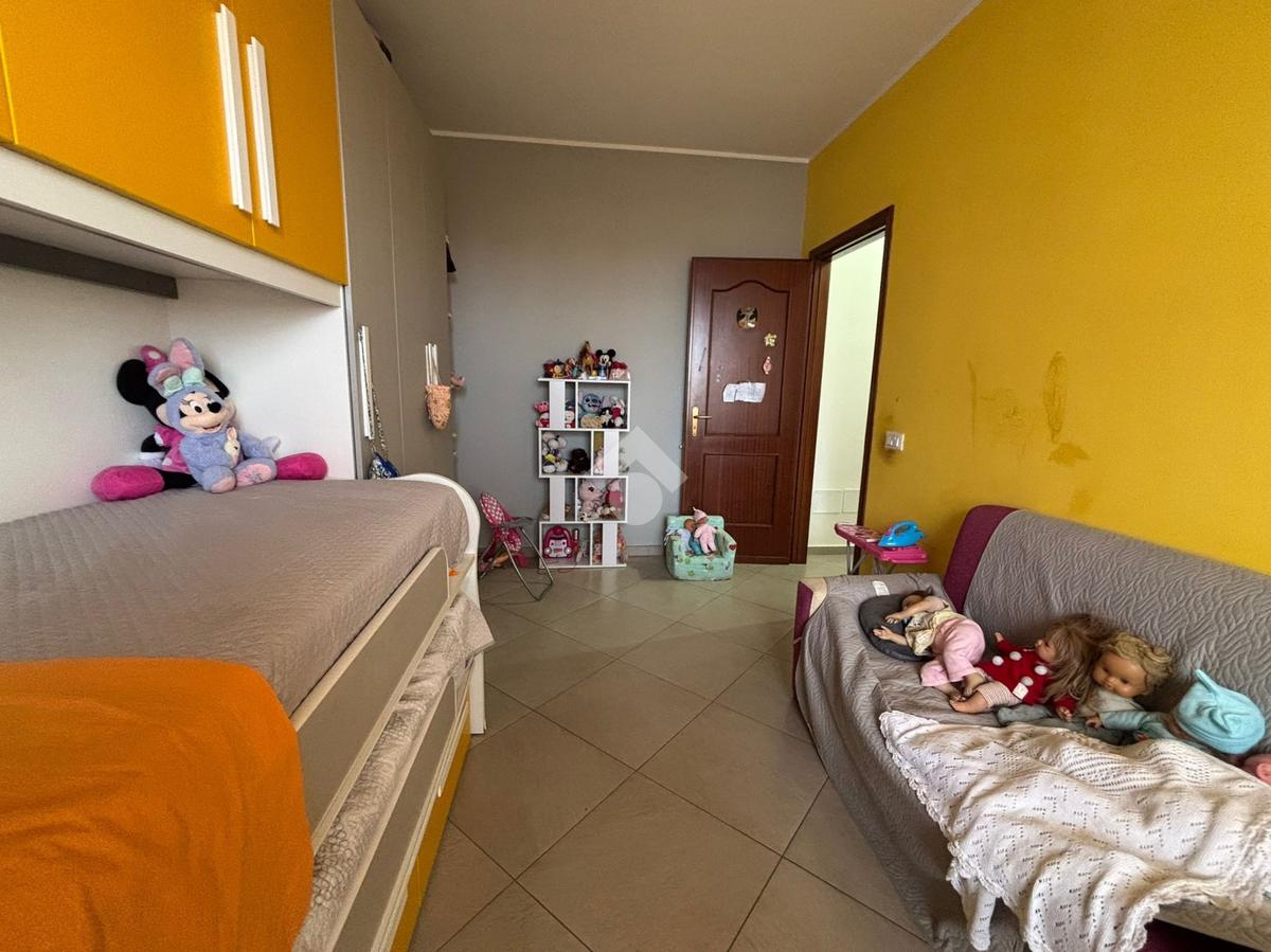 Attraverso un corridoio si accede alla zona notte, composta da una camera matrimoniale e una cameretta, entrambe con apertura sul balcone del prospetto secondario. Completano la soluzione due bagni, uno con vasca e l'altro con box doccia, oltre a due pratici e spaziosi ripostigli.