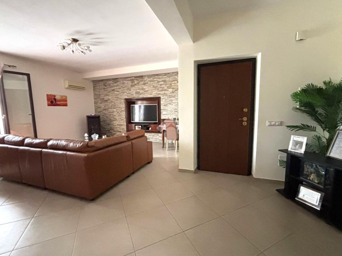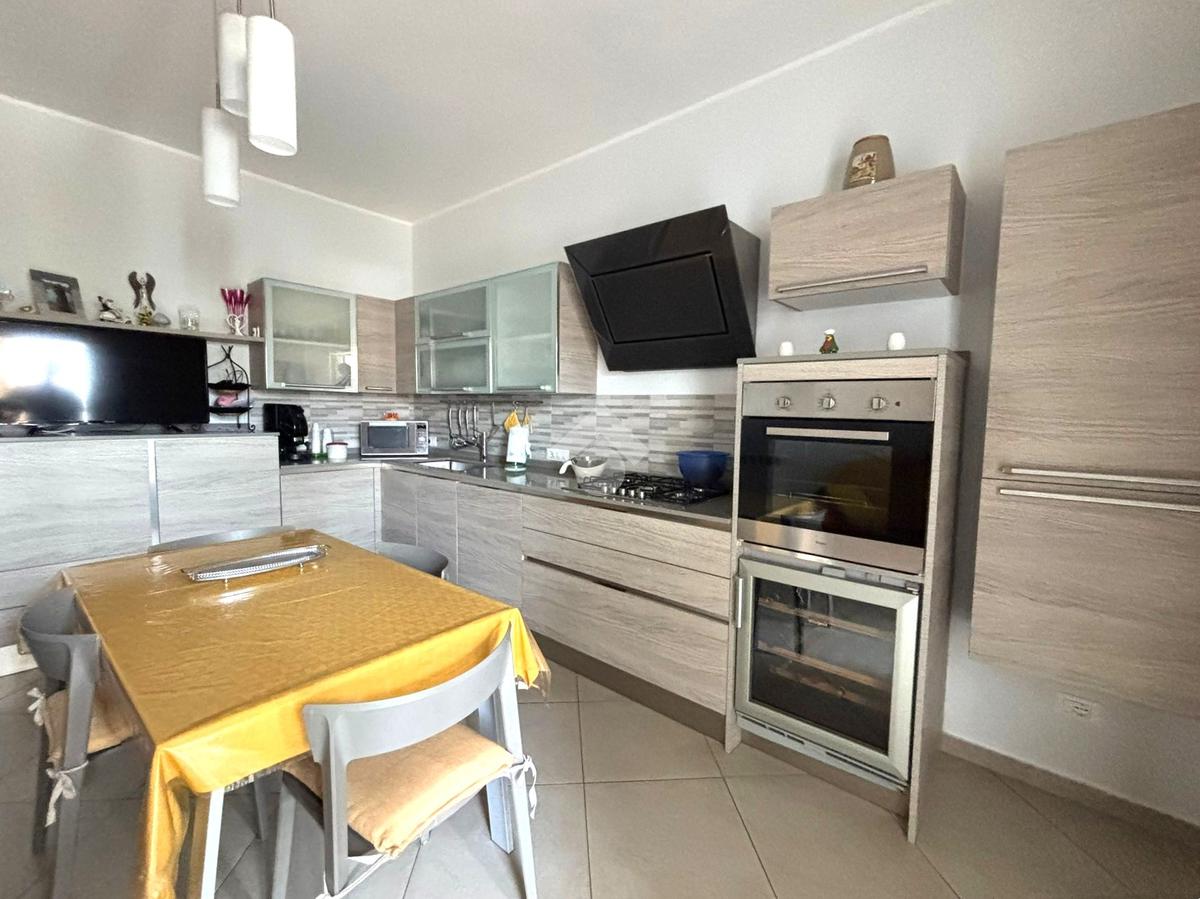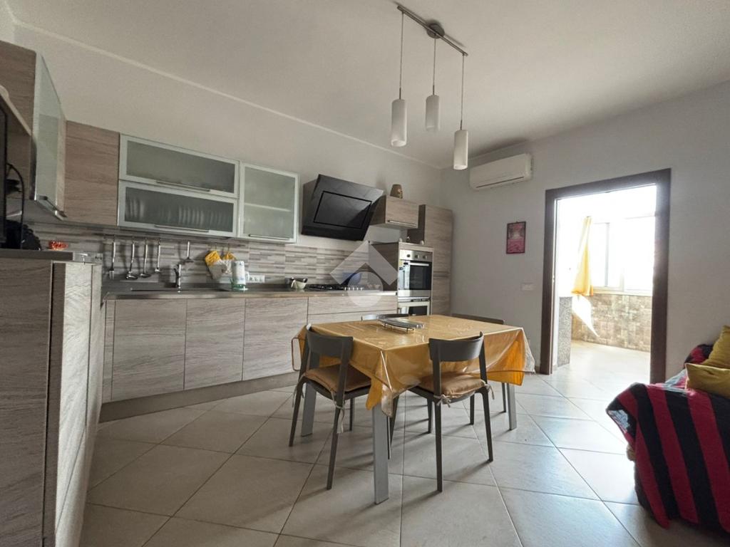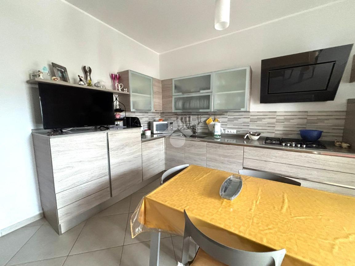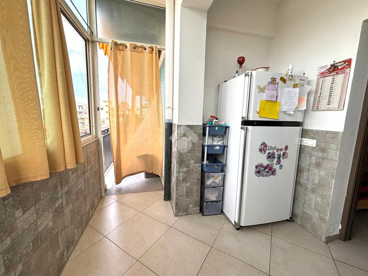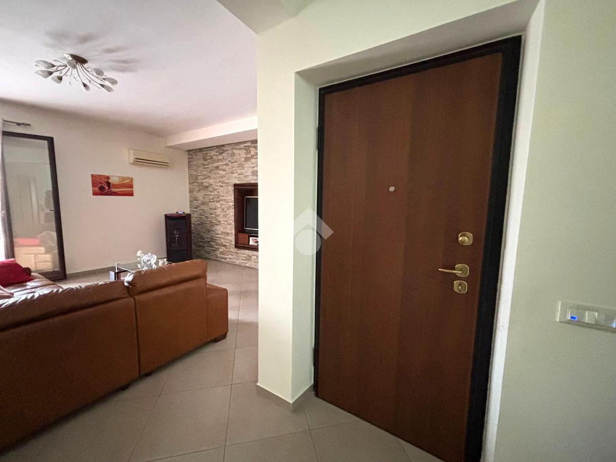 L'ingresso avviene tramite porta blindata direttamente sull'ampio soggiorno, con affaccio sul prospetto principale. Adiacente al soggiorno si trova la cucina abitabile, anch'essa con apertura su balcone.