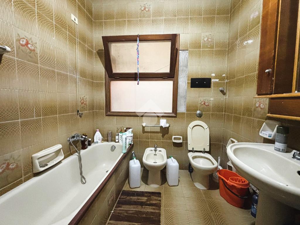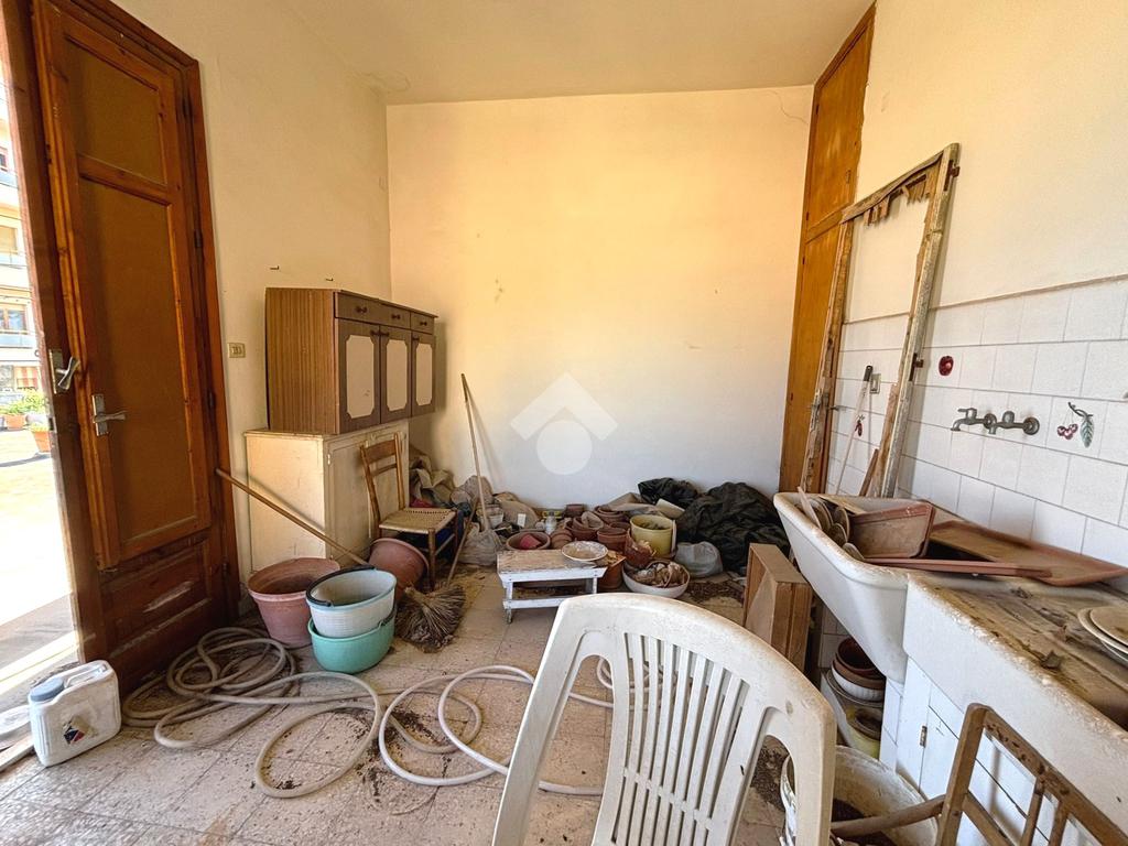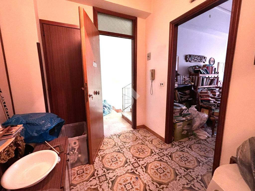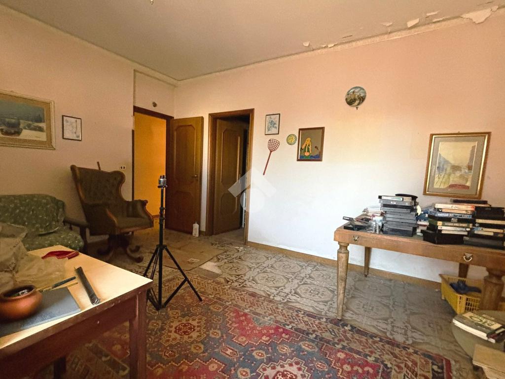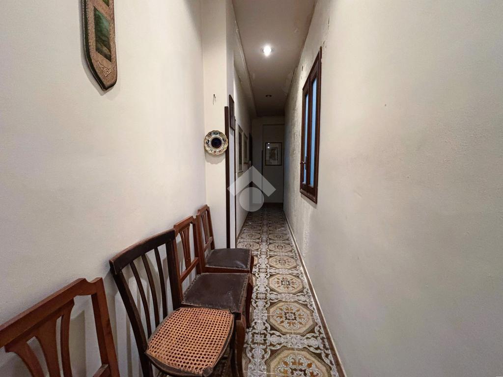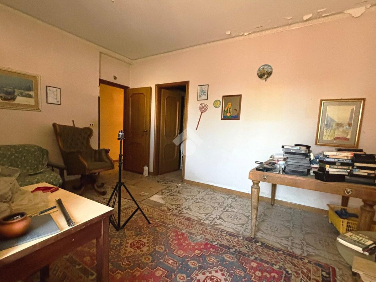 Il primo piano, la prima delle unità residenziali, è così composto: ingresso che conduce a un corridoio centrale che disimpegna tutti gli ambienti dell’appartamento, costituito da una camera matrimoniale, una cucina abitabile, uno studio, due camerette, un salotto, due bagni entrambi dotati di doccia e un ripostiglio. La distribuzione degli spazi risulta funzionale, con ambienti luminosi e finiture tipiche del periodo costruttivo.